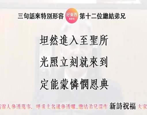 因着疫情,我们开始有了网络福音开展。借着拍摄影片,我们到了一个一个弟兄姊妹的家里。弟兄姊妹们的见证使我们得激励,也使我们认识包罗万有、延展无限的基督,他们的见证也就像福音单张,应付人的需要。(林佳宜)