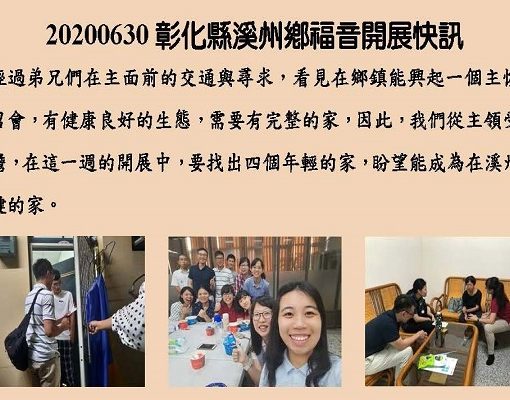 第二、全区动起来,有次有序一同配搭。圣徒们分成四组,每组四位弟兄姊妹,包含儿童活动、诗歌、故事的服事人位,并安排配搭轮值表,让各组交通豫备课程。至于故事内容,是以儿童教材(一)『当我是个小小婴孩』来阐述性格的重要和养成。其他弟兄姊妹可帮忙照顾儿童的秩序,并为着福音的缘故,借机接触家长。因着小区约有一半的圣徒前来配搭,而达到人人尽功用的目的,服事起来就轻省许多。借着这样的福音相调,将我们带进基督身体一的实际里。