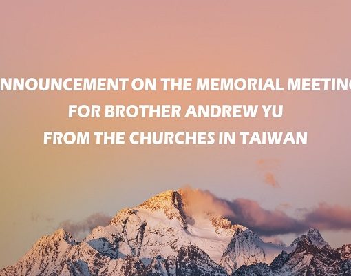 已发表 2020-12-26 Announcement on the Memorial Meeting for Brother Andrew Yu from the Churches in Taiwan Announcement on the Me […]