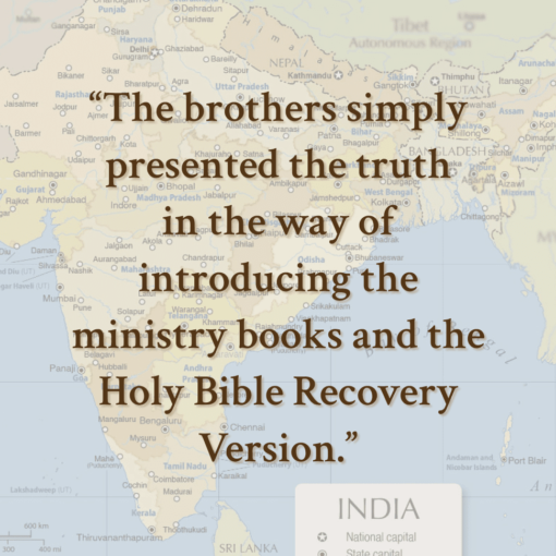 The brothers have encouraged the saints to spare no effort and pay the price to attend the annual seven conferences and trainings on the scene. Through the video trainings, Prayer-Reading-Speaking Conferences, and Morning Revival pursuits held by the brothers in various locations, the saints on the island of Taiwan have increasingly burdened themselves to enter into the messages of the seven conferences and trainings each year, to keep up with the up-to-date speaking of the Lord, and to walk the way constituted by the truth.