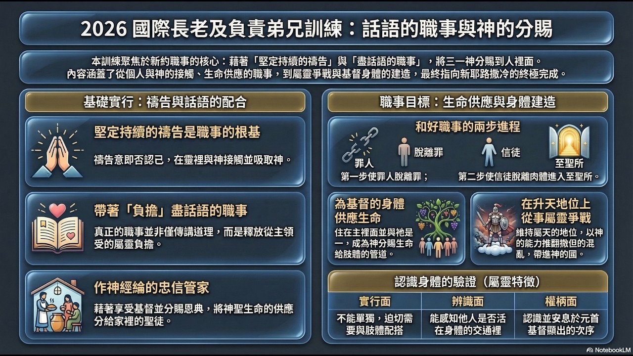 已发表 2026-04-02 Spring 2026 International Training for Elders and Responsible Brothers | General Overview of the Messages 2026年春季国际长老及负责弟兄训练 | 信息鸟瞰总览 Resource:https://youtu […]