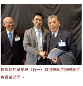 较年长的吴弟兄特别鼓励主办的几位负责弟兄,开心说道:“今天这个大会, 非常非常受感动 。而且整场流程可说是非常专一,以传福音为目的 。从头到尾都在圣灵合一的水流中,每个安排、每个见证都是成全器皿, 真的不要小看这些青年人,都是人才!”