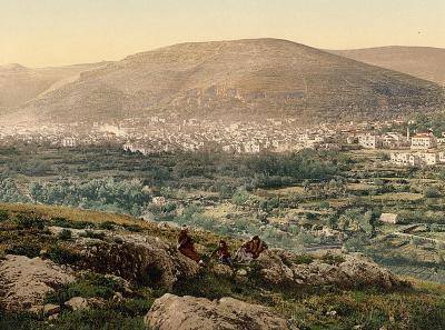 基利心山(Mount Gerizim)意為「荒地」、「多岩石」、「割下者」,其東北面為以巴路山,這兩座山都位於撒馬利亞的中心,相對而立。兩山之間是個肥沃的山谷,稱為示劍谷。以色列人進入應許之地以前,示劍城是迦南人的堅城重鎮,居於戰略性位置,在軍事、政治、宗教方面都舉足輕重。