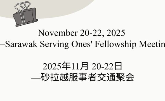 Knowing and Experiencing the God of Abraham, Isaac […] November 20-22, 2025 – Sarawak Serving Ones’ Fellowship Meeting 2025 …