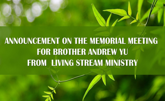 To the all saints and the churches in the Lord’s r […] Announcement on the Memorial Meeting for Brother Andrew Yu from …
