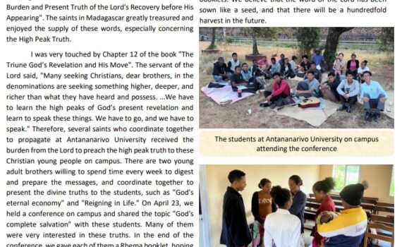 Source:https://www.facebook.com/photo/?fbid=833240 […] [Stories of overseas PROPAGATION—Africa🔹Madagascar] Sharing of home letters in April …