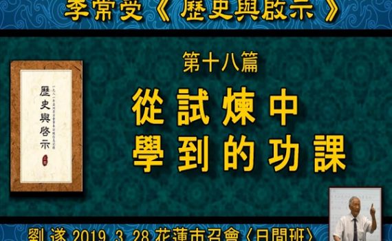 Source: https://youtu.be/Jhw3S15MoFg 【刘遂《历史与启示》第十八篇『从试炼中学到的功课』】花莲市召会 Message 18 of “The History and Revelation – Learning …