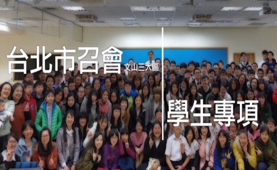 来源:李彥霆 https://youtu.be/PztI-pF6_Bw 了解更多主在全地行动的视频资 […] 台北文山三大区学生专项(召会通讯第197期) College Gospel Meeting in the Church of Wenshan 3rd …