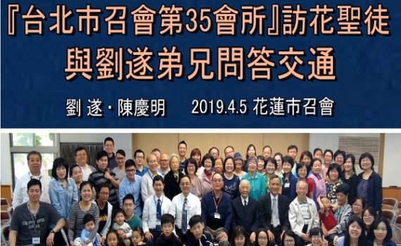 Source: https://youtu.be/eBW4r9BdnmA 【刘遂 、陈庆明「『台北市召会第35会所』访花圣徒与刘遂弟兄问答交通」】花莲市召会 Fellowship concerning the Question and Answer of Saints …